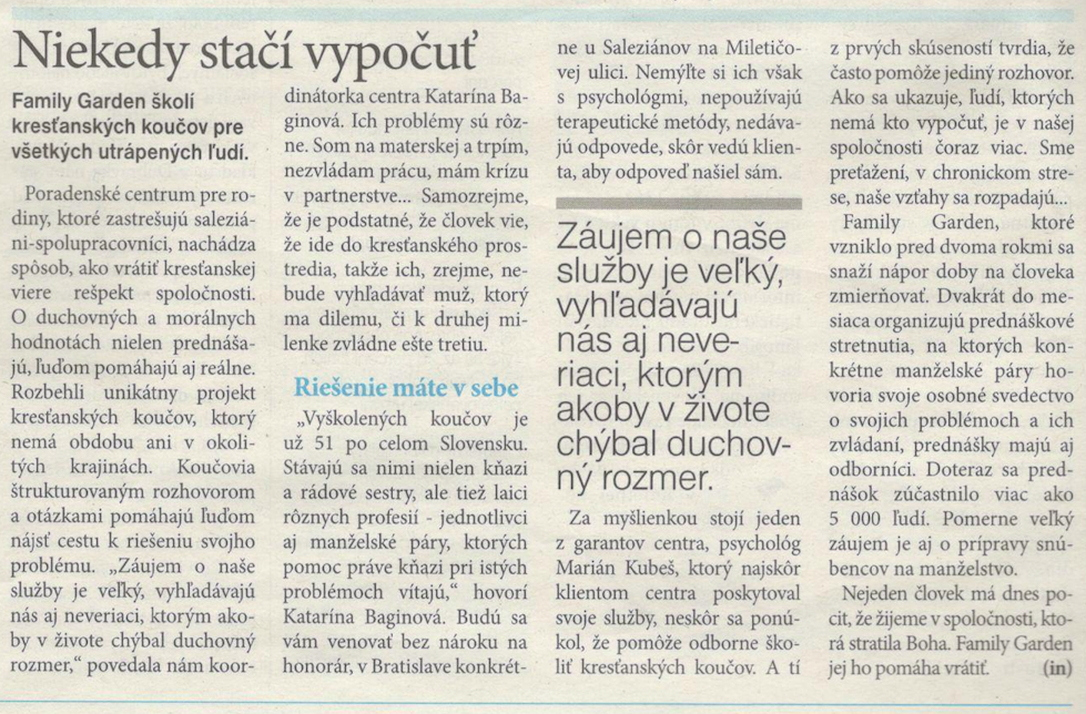 V marcovom čísle dvojtýždenníka BRATISLAVA ste mohli nájsť aj článok o nás s názvom Niekedy stačí vypočuť.