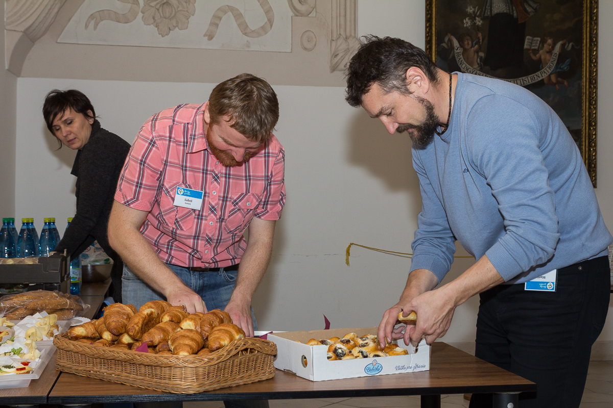 V nádhernom refektóriu so štukovou výzdobou sa nás stretlo okolo 60. Číslo nie je presné, pretože stále niekto prichádzal a odchádzal, takže sa naše počty neustále menili. Čo však zostávalo, bolo skvelé prijatie, radosť zo stretnutia, objatia, úsmevy, žičlivosť.